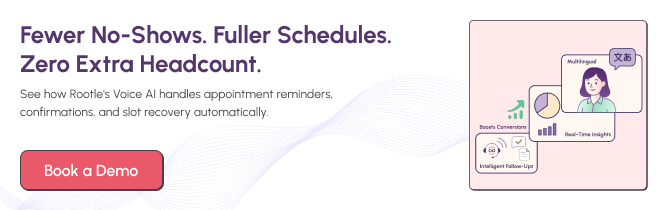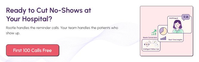 → Platform reference: Rootle is a Voice AI platform for patient appointment reminders in India — multilingual, HMS-integrated, compliant with TRAI service call requirements, with real-time confirmation tracking and waitlist-fill logic