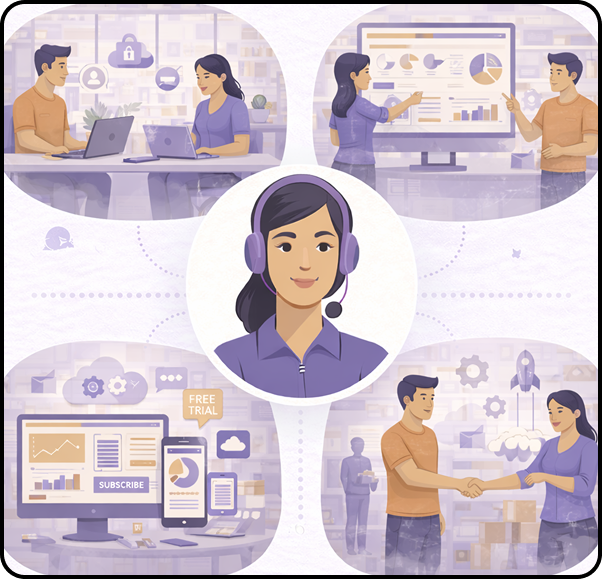 CRM, helpdesk, billing platform, and product database work together in real time. No repeated context, no manual lookups, no agent switching between five tabs.